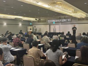 二〇二四年度事業報告・収支決算報告・二〇二五年度事業計画案並びに収支予算案が、各担当理事より報告。名誉会員推挙、質疑応答、新理事の紹介で午後四時三〇分に総会を終了。「大雪の間」に会場を移し、懇親会を開催。午後六時三〇分に全日程を終了した。(記録・沢村俊輔 写真・福田恒昭)